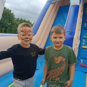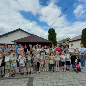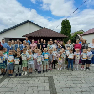 We wtorek- 24 czerwvca b.r. w miłej i rodzinnej atmosferzeobchodzony był Dzień Rodziny. Rodzice naszych przedszkolaków przybyli, aby wspólnie ze swoimi pociechami świętować to wzruszajace wydarzenie. Dzieciaki wyraziły swoja miłość poprzez wiersze, piosenki i tańce. Podczas części artystycznej nawiązano również do zakończenia roku szkolnego. Wychowawca p. Barbara Gomółka podziękowała rodzicom za współpracę i zaangażowanie podczas organizacji różnych uroczystości. Swoim wychowankom pogratulowała wspaniałego występu, podziękowała za cały rok wspólnej pracy, wręczyła dyplomy i zxaprosiła wszystkich do zabawy. Na piknik przybyły całe rodziny, na które czekało wiele atrakcji: dmuchaniec, konkursy, konkurencje sportowe i zabawy ruchowe oraz malowanie twarzy przez Maję. Wszyscy mogli spróbować kiełbaski z ogniska oraz pysznych ciast upieczonych przez rodziców. Po uroczystosci dzieci wręczyły rodzicom własnoręcznie wykonane upominki- serduszka. Za udział w konkursach i zabawach dzieci otrzymały nagrody zakupione przez Radę Rodziców.