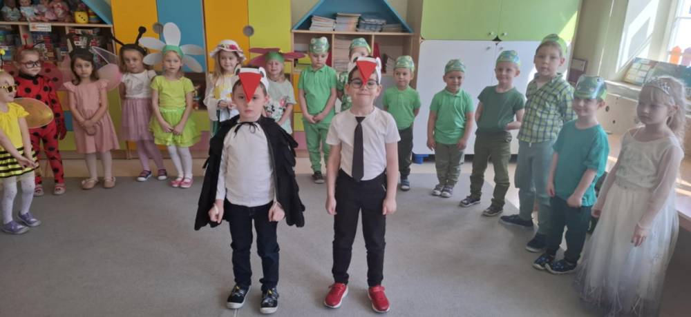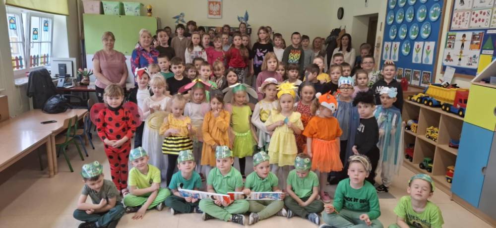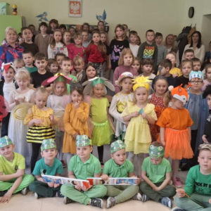 ,,Gdzie jestes Wiosno"- przedstawienie dla rodziców i uczniów klas I-II. Chociaż oficjalnie nową porę roku powitaliśmy 21 marca i dzieci z grupy Bajkowe Przedszkolaki wystąpiły w tym dniu przed swoimi młodszymi i starszymi kolegami z grup przedszkolnych to postanowiliśmy zaprezentować inscenizację szerszej publiczności. Dzieci włozyły w przygotowanie występu wiele trudu, rodzice pomogli wykonać stroje, a całość dopełniła oprawa muzyczna w postaci pięknych utworów i tańców o tematyce wiosennej . Kolejny występ postanowiliśmy zadedykowqać Rodzicom, by mogli podziwiać umiejętnosci i talenty swoich dzieci. Dla przedszkolaków uśmiech rodziców i pochwała z ich strony to ogromne uznanie i nagroda, która motywuje do dalszych wyzwań, dodaje wiary we własne możliwosci i przełamuje lęki. Po udanym występie dla Rodziców dzieci zaprosiły do obejrzenia inscenizacji uczniów klasy I i II.