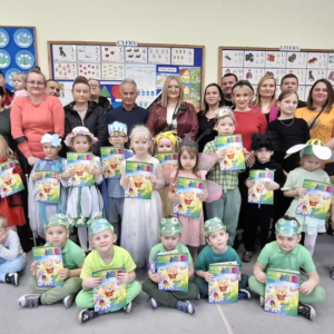 31 marca przedszkolaki ponownie wcieliły się w postaci pór roku, zwierząt, kwiatów , słońca, deszczu i wiatru by zaprezentować uczniom swoje umiejętnosci teatralne i przenieść ich w kolorowy świat budzącej się wiosną przyrody. Razem ze starszymi dziećmi żegnaliśmy zimę , a zapraszali wiosnę używając czarodziejskich słów, spiewaliśmy piosenki i zachęcaliśmy do tańca. Całe spotkanie przebiegło w miłej atmosferze. Dzieci po występie otrzymały od rodziców , nauczycieli, jak i starszych kolegów gromkie brawa, wiele pochwał oraz słodkie nagrody. Uwieńczeniem naszych spotkań były wspólne fotografie. Za wszystko bardzo serdecznie dziękujemy B. Gomółka
