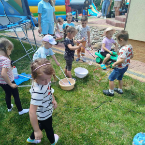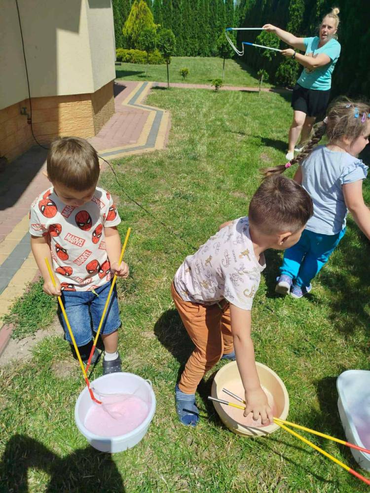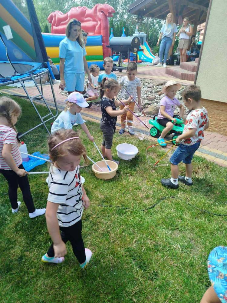26 czerwca dzieci z grupy ,,Krasnoludki" wraz z trodzicami spędziły wyjatkowy dzień integracyjny. Spotkanie odbyło się w ogrodzie jednej z mam przedszkolaków- u Pani Kasi Szymańskiej, która zorganizowała całe wydarzenie i udostępniłaswoje dmuchańce- wielką atrakcjędla dzieci!