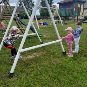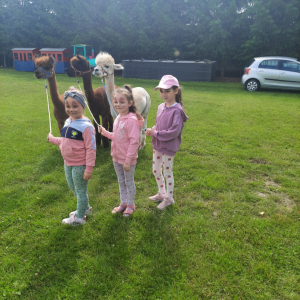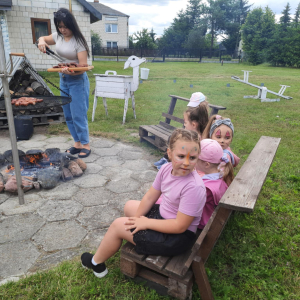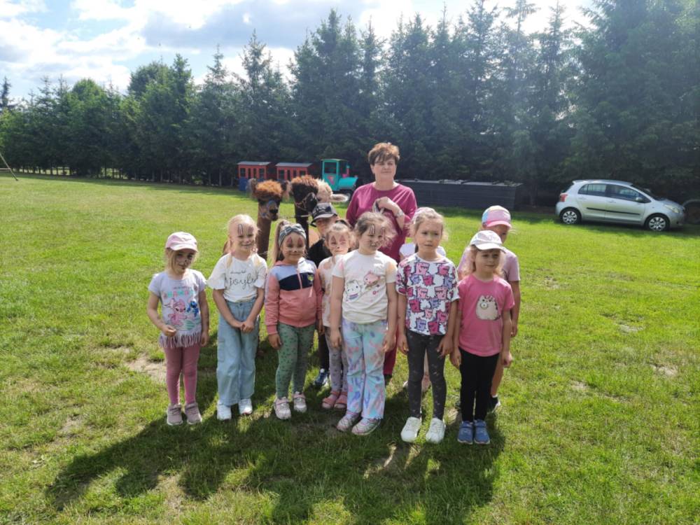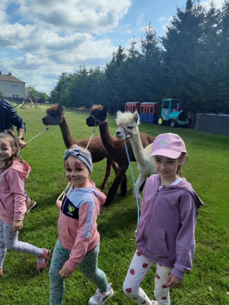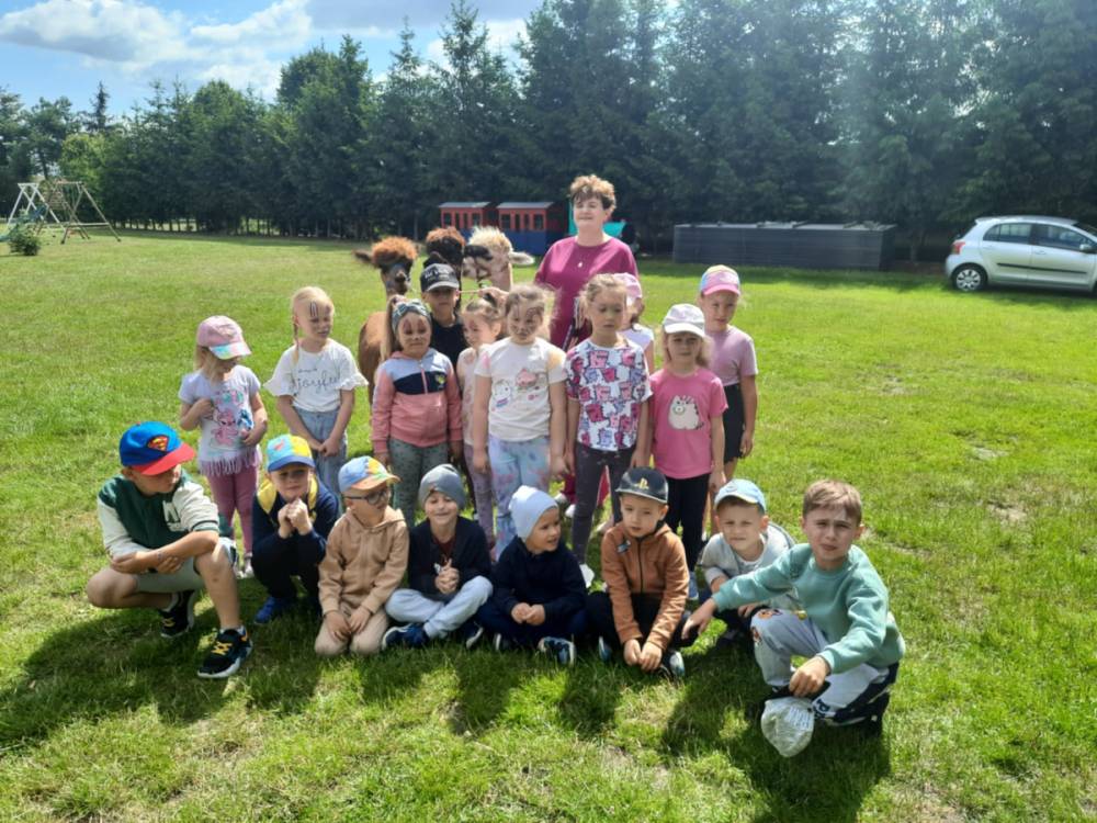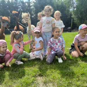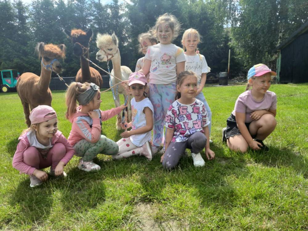 24.06.2025r. przedszkolaki z grupy IV Misie pojechały na wycieczkę so Alpakowej Ostoi w Maniach. Dzieci w bezpośrednim kontakcie z przyrodą wiele dowiedziały się o życiu, pochodzeniu, zwyczajach i sposobie odżywiania alpaki. Miały mozliwość pospacerowania z alpakami: Biszkoptem, Paco i Julianem w grupach i indywidualnie pod bystrym okiem p. Gosi i wychowawczyni p. Iwony. Zabawy na placu i przejażdżka elektryczną ciuchcią dały wiele radosci, a pieczone na ognisku kiełbaski wiele smaku. Quizyi warsztaty w stodole pozwoliły dotknąć i poznać do czego wykorzystywana jest alpakowa wełna i wykonać z niej pracę plastyczną.