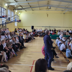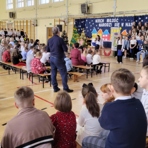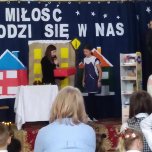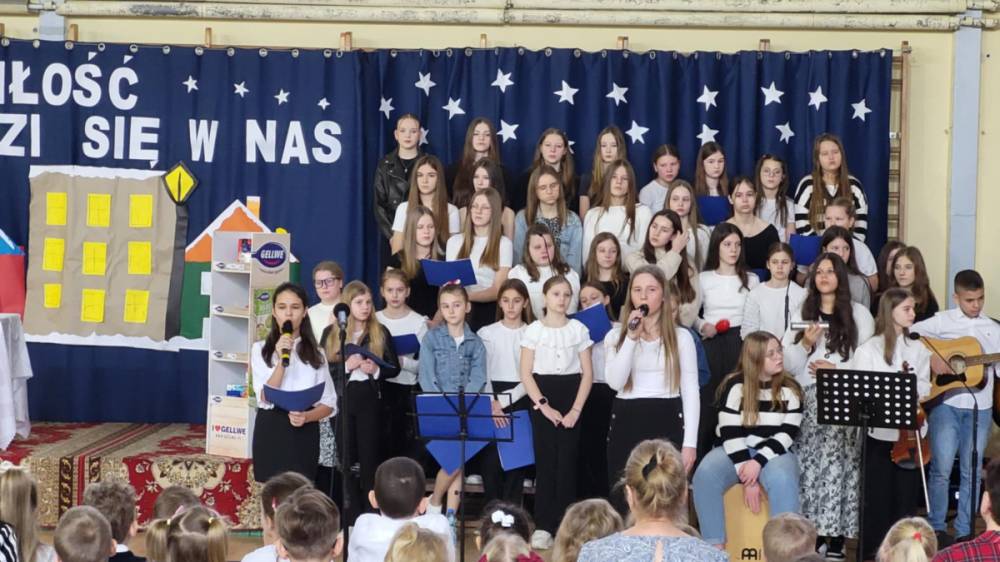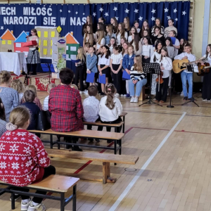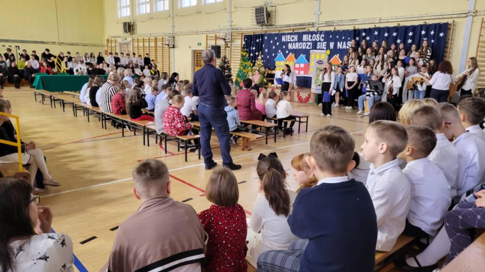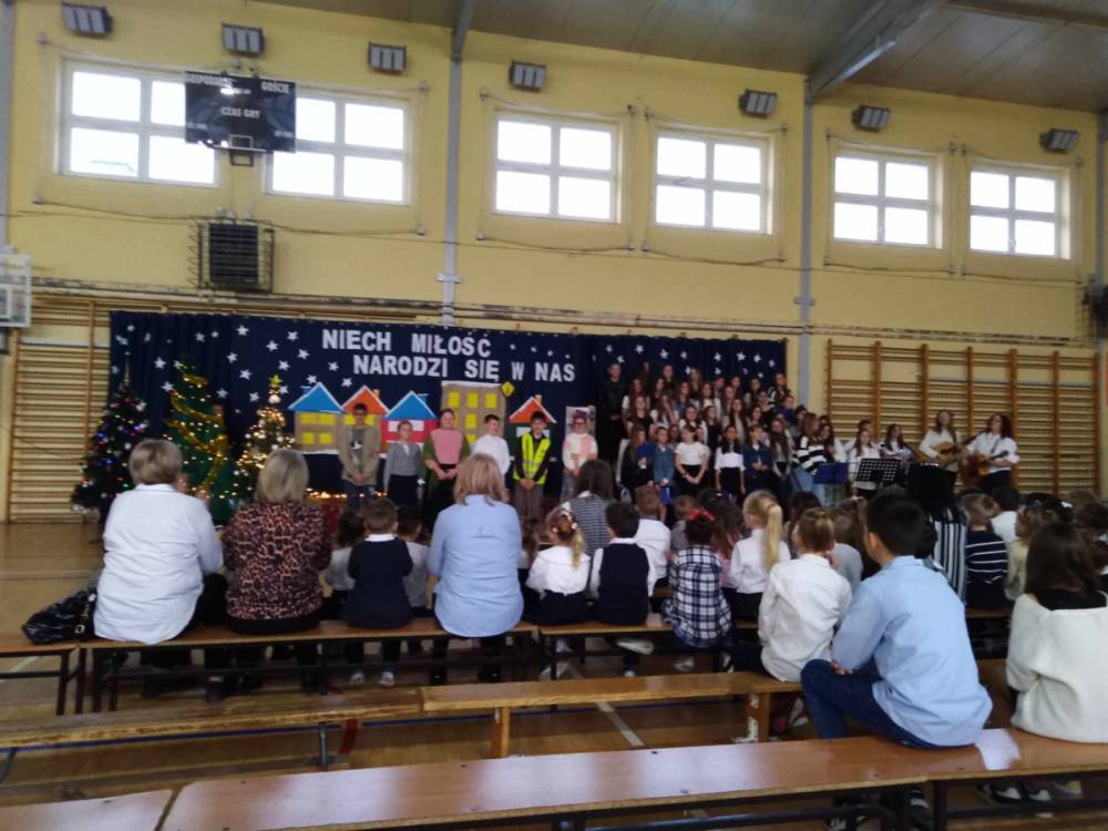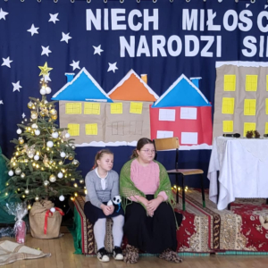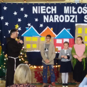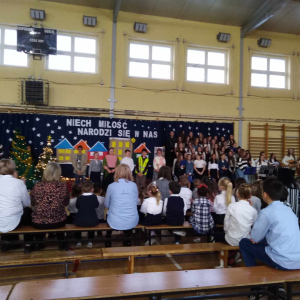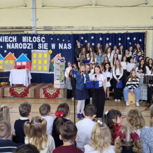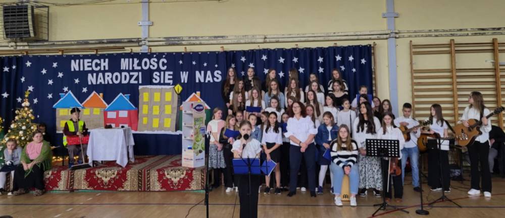 Dnia 20.12.2024 r. odbył się apel świąteczny . Pani Dyrektor Iwona Chmielewska powitała przybyłych gości w osobie Ks. wikariusza Krzysztofa Sobczuka , rekolekcjonisty franciszkanina o. Juliusza i Przewodniczącego Rady Gminy pana Piotra Łątkę. Nasi uczniowie zaprezentowali przedstawienie bożonarodzeniowe pt. ,,Niezwykły prezent" . Babcia grająca swoją rolę miała znależć sposób na odzyskanie radości wśród ludzi smutnych , zdenerwowanych. Tym sposobem okazał się ,,niezwykły prezent'' , który przemieniał na lepsze serca wszystkich mieszkańców. Przekazywany z rąk do rąk upominek ,do którego włożono ,,trochę miłości" miał magiczna moc . Wnosił do ich życia dużo radości ,ciepła i życzliwości . Przedstawienie zostało ubogacone pięknymi kolędami i pastorałkami w wykonaniu chóru szkolnego i solowym naszych uczennic . Wprowadziło wszystkich w świąteczny nastrój i dostarczyło wielu wzruszeń. Całość przygotowały panie : Edyta Pająk i Bożena Wawryniuk.