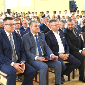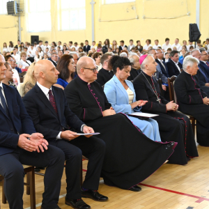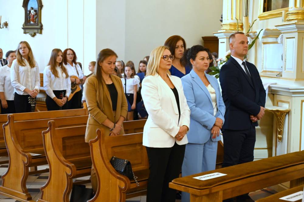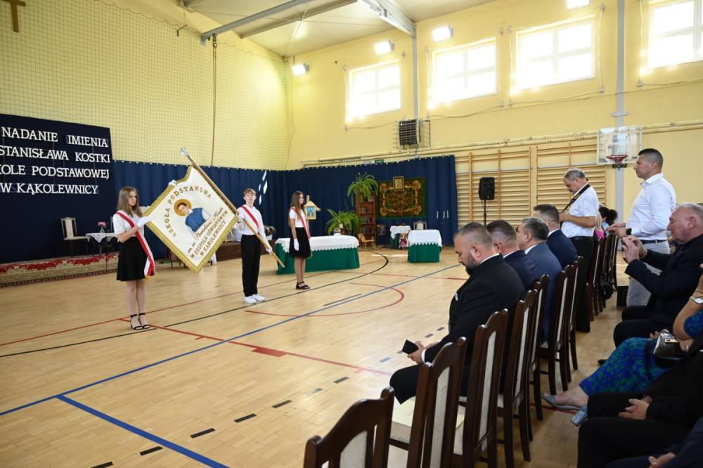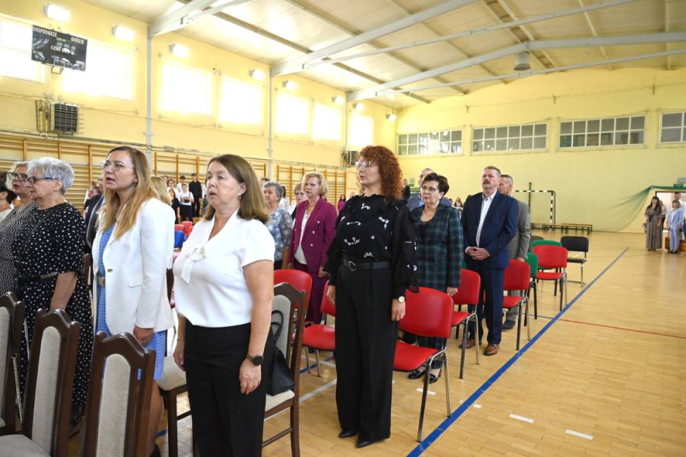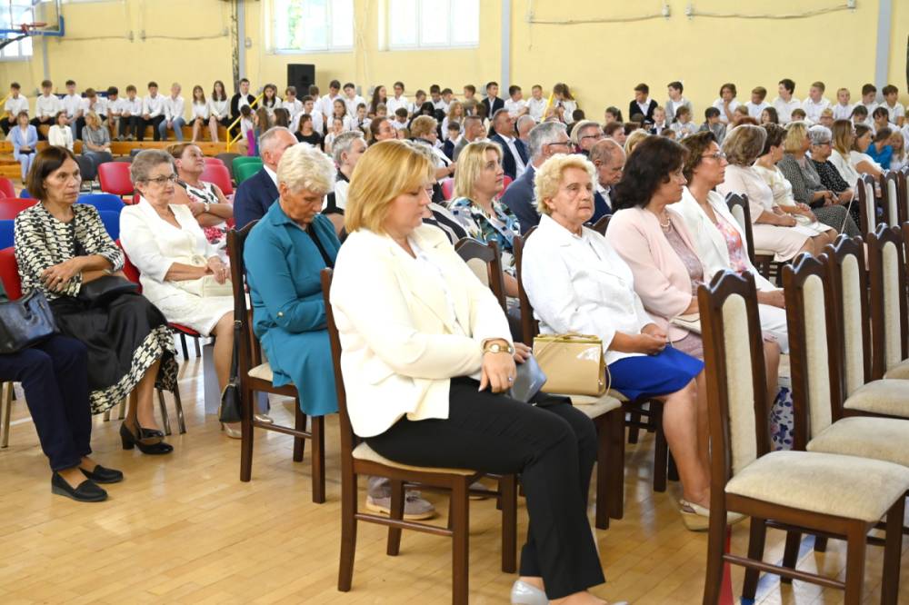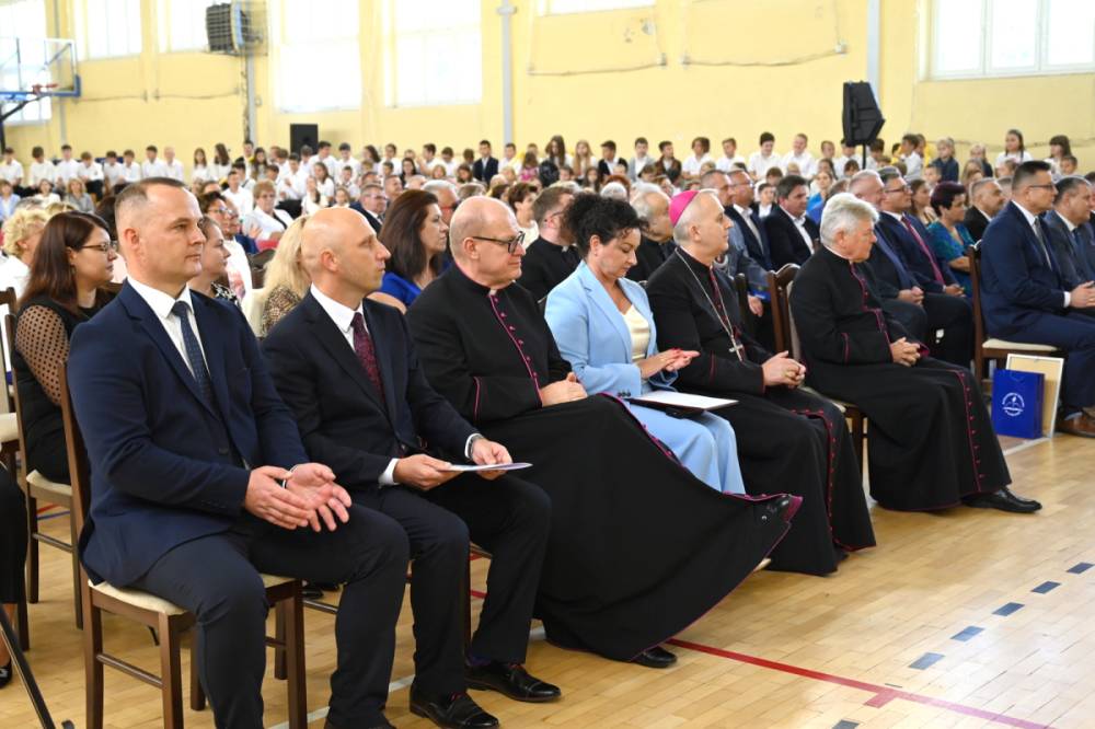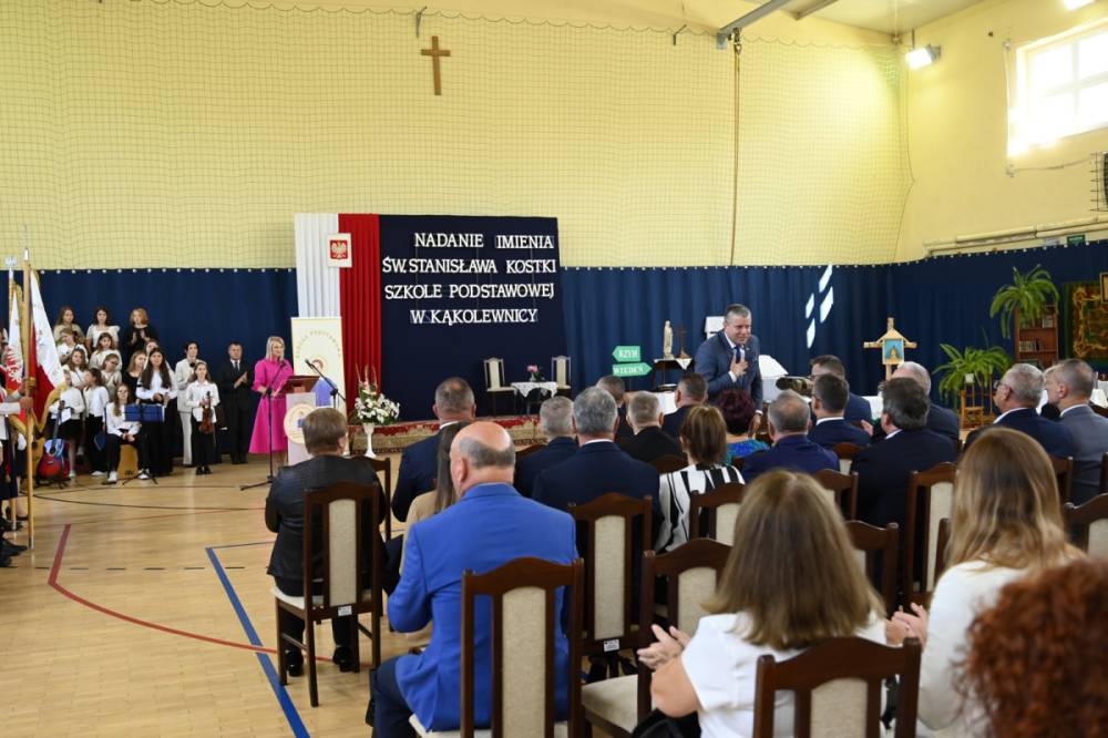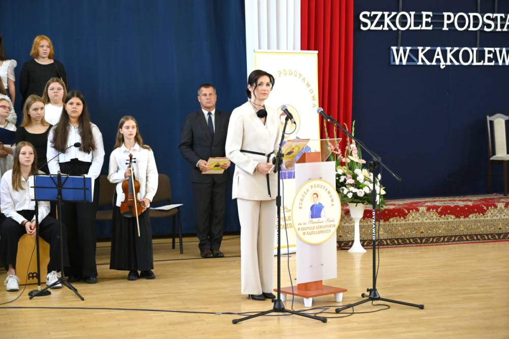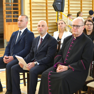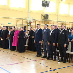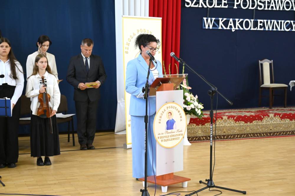 Pani Dyrektor Iwona Chmielewska przywitała szanownych gości, którzy zaszczycili nas swoją obecnością w tym szczególnym dniu: JE Biskupa Grzegorza Suchodolskiego, Dziekana Dekanatu Międzyrzeckiego Ks.Kan. Dariusza Parafiniuka, Proboszcza Parafii Kakolewnica Ks.Kan. Janusza Sałaja, Ks. Seniora Emiliana Zarzyckiego, Wikariusza Ks. Krzysztofa Sobczuka, Pana Jarosława Kwaska Członka Zarządu Województwa Lubelskiego, Pana Piotra Mackiewicza Wicekuratora Kuratorium Oświaty w Lublinie, Pana Szczepana Niebrzegowskiego Starostę Radzyńskiego, Pana Grzegorza Gałeckiego Przewodniczącego Rady Powiatu Radzyńskiego wraz z radnymi, Aspiranta sztabowego Pana Janusza Mazurka Naczelnika Wydziału Prewencji Komendy Powiatowej Policji w Radzyniu Podlaskim, Panią Mariolę Król Dyrektora Poradni Psych. Ped. w Radzyniu Podlaskim, Pana Piotra Łątkę Przewodniczącego Rady Gminy Kąkolewnica wraz z radnymi, Panią Annę Mróz Wójta Gminy Kąkolewnica wraz z pracownikami Urzędu Gminy, Pana Daniela Grochowskiego Wójta Gminy Radzyń Podlaski, Pana Stanisława Okońskiego wieloletniego Dyrektora szkoły, Panią Zofię Goławską byłą Dyrektor Gimnazjum i wszystkich zgromadzonych.