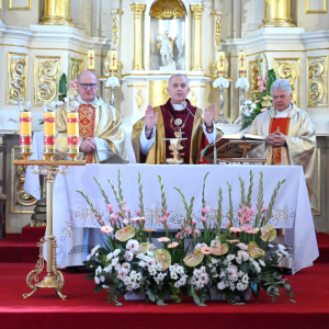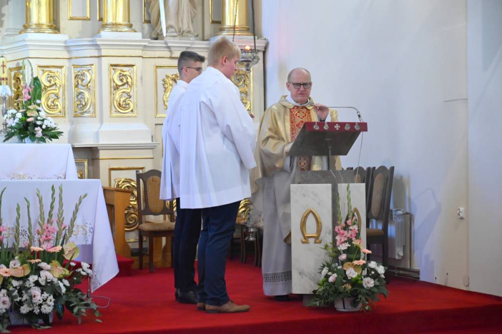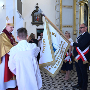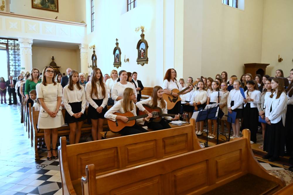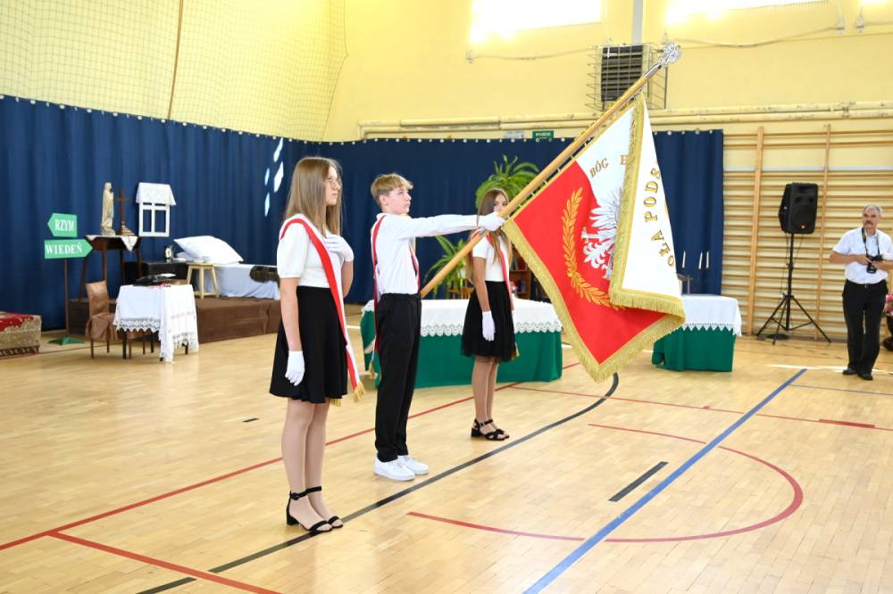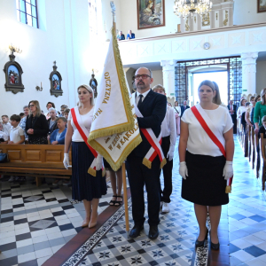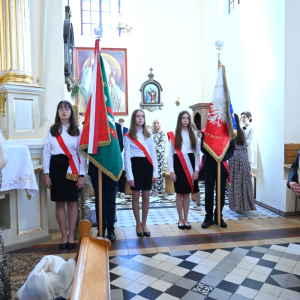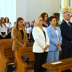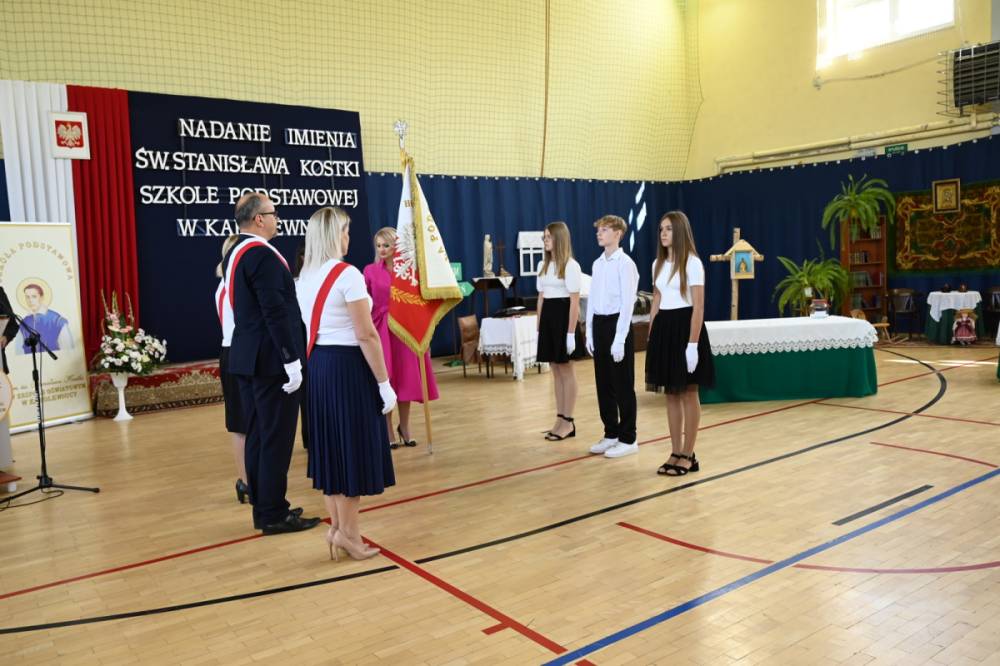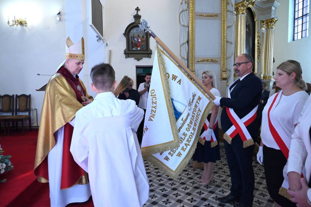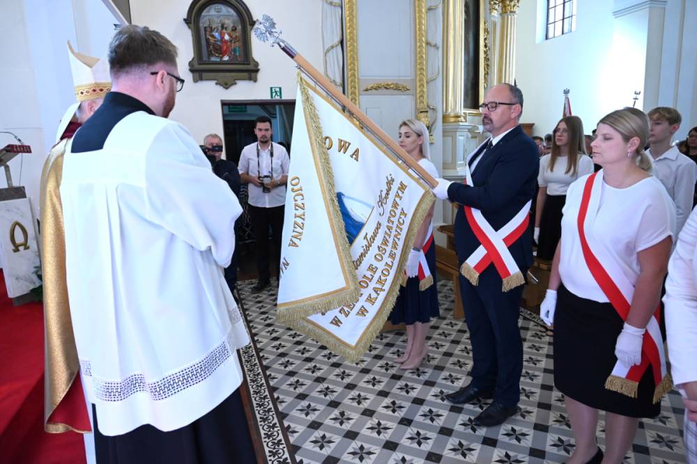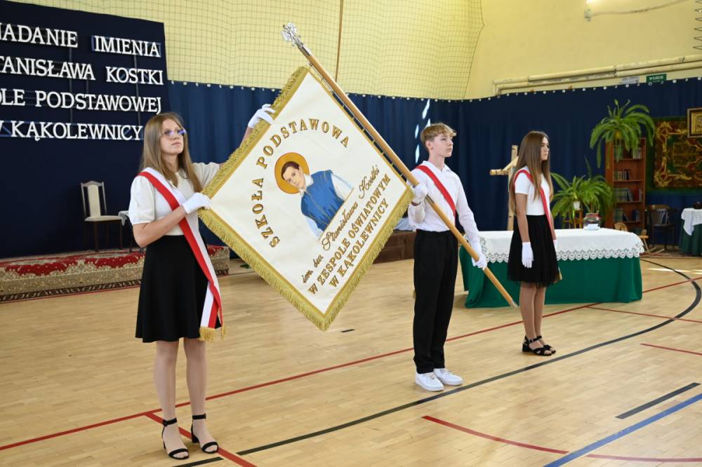 Dzień 25 września 2024 roku zapisze się w historii naszej szkoły jako jeden z najważniejszych. Tego dnia nastąpiło nadanie imienia św. Stanisława Kostki Szkole Podstawowej i przekazanie sztandaru. Uroczystość rozpoczęła się mszą świętą, którą sprawowali Biskup Diecezji Siedleckiej Grzegorz Suchodolski, Dziekan Dekanatu Międzyrzeckiego Ks. Kan. Dariusz Parafiniuk oraz Proboszcz Parafii Św. Filipa Neri Ks. Kan. Janusz Sałaj. Podczas Mszy Świętej Biskup Grzegorz Suchodolski dokonał poświęcenia sztandaru. Po eucharystii wszyscy w uroczystym orszaku udali się do szkoły.