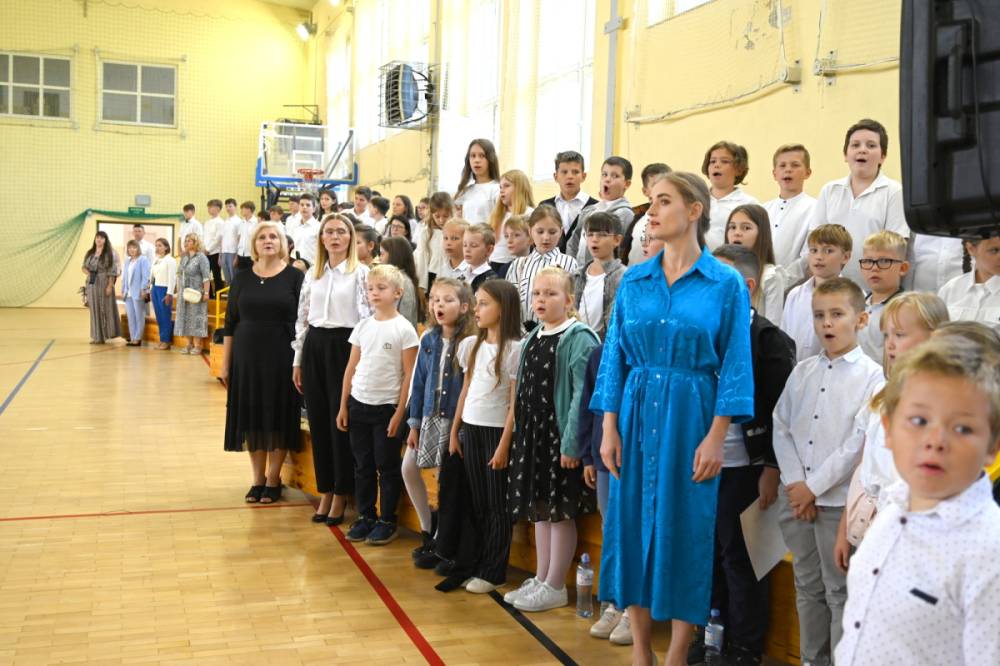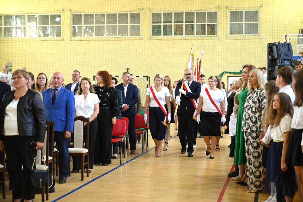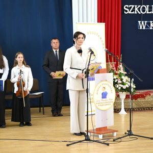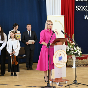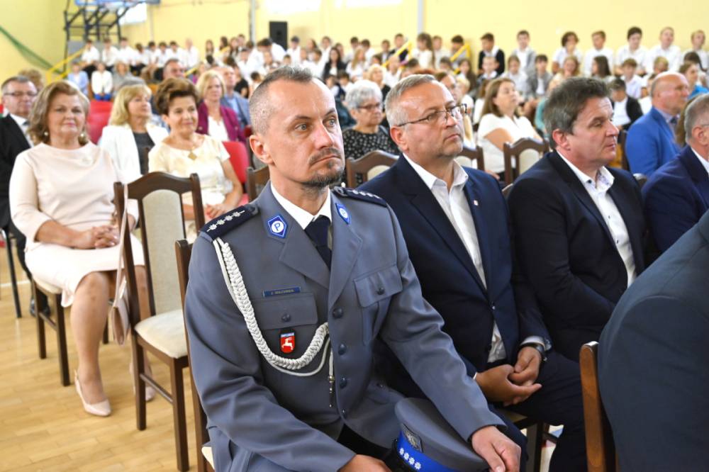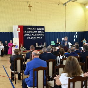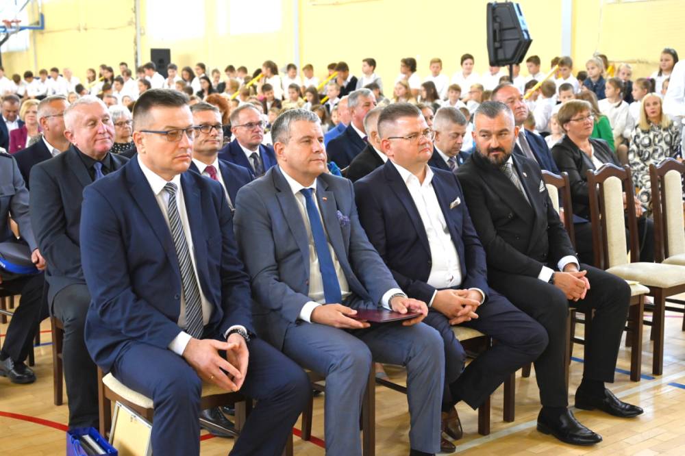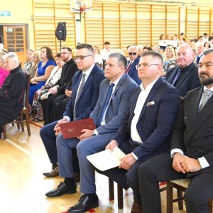 Uroczystość zakończyło przemówienie Przewodniczącego Rady Gminy Pana Piotra Łątki, który do Pani Dyrektor Iwony Chmielewskiej skierował słowa podziękowania i uznania za podjęcie inicjatywy i zwieńczenie sukcesem podjętych działań. Podziękował również nauczycielom i całej społeczności szkolnej za zaangażowanie i trud włożony w tak ważne przedsięwzięcie.