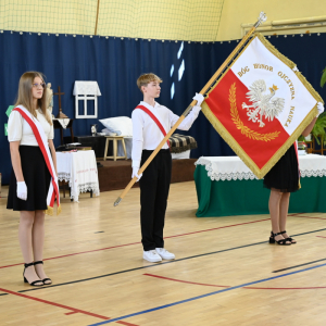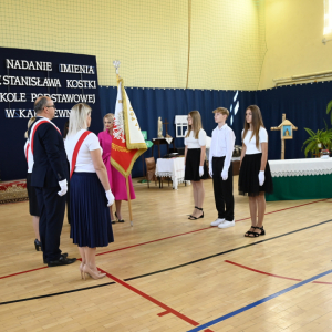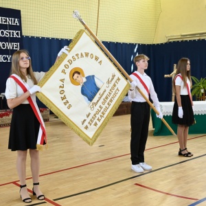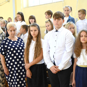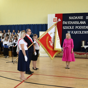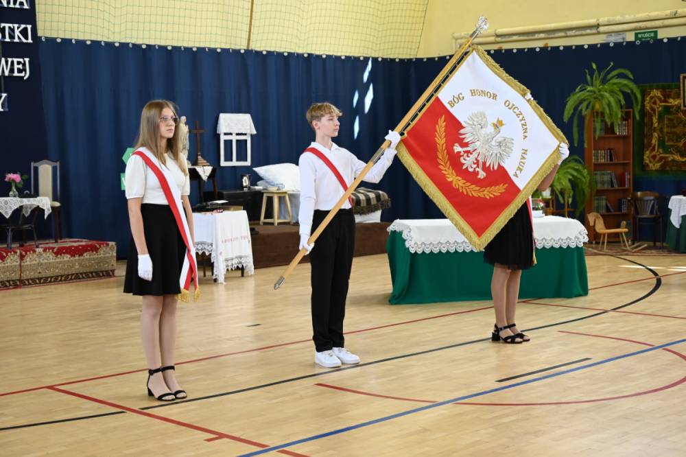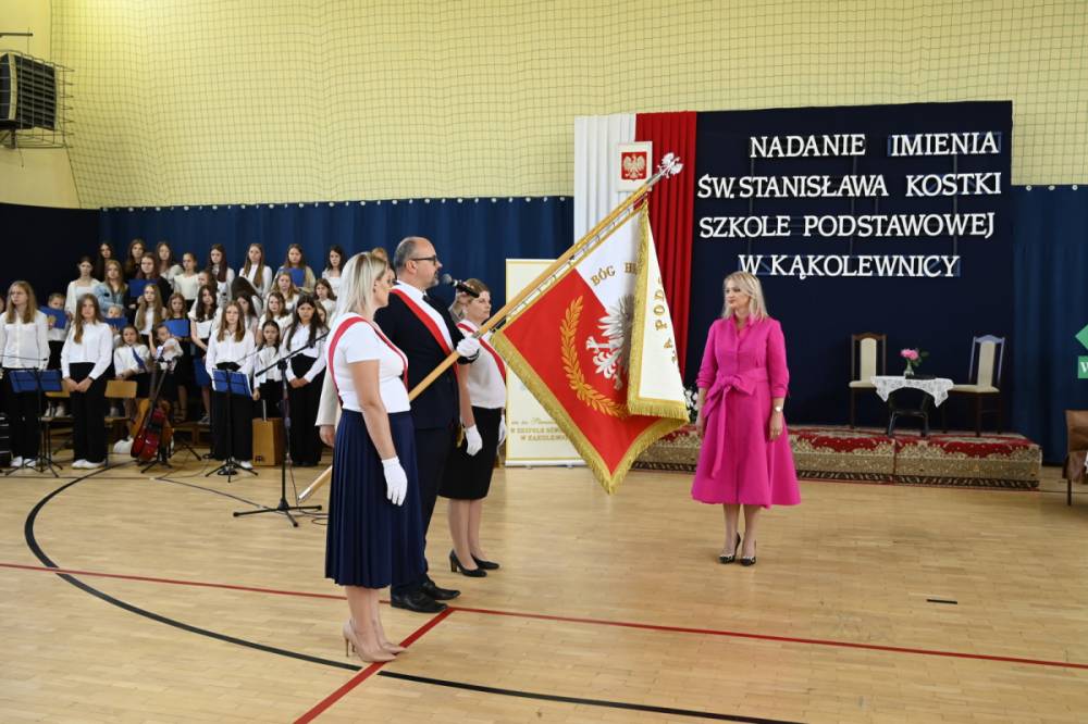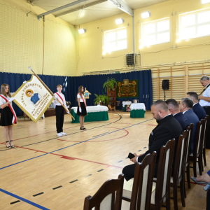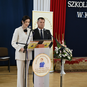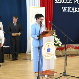 Kończąc uroczystość Pani Dyrektor podziękowała Biskupowi Grzegorzowi Suchodolskiemu za poświęcenie sztandaru i modlitwę za wspólnotę szkolną, Proboszczowi Ks. Kan. Januszowi Sałajowi za wsparcie, pomocną dłoń i ogromne zaangażowanie w przygotowanie tej uroczystości, Wójt Gminy Pani Annie Mróz za podjęcie uchwały o nadaniu szkole imienia, emerytowanym nauczycielom i pracownikom za obecność i troskę o wspólne dobro oraz wszystkim zgromadzonym nauczycielom, pracownikom, uczniom i rodzicom za trud i pomoc przy organizacji tego święta.