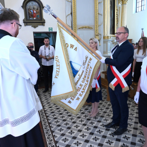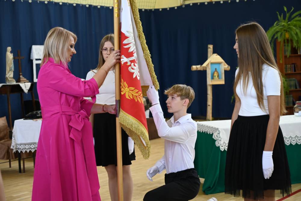 Pani Elżbieta Marzycka odczytała prezentację sztandaru dostarczając wszystkim obecnym informacji na temat jego znaczenia oraz wartości jakie niesie ze sobą.